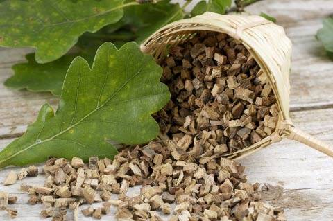 В коре дуба в большом количестве содержатся дубильные вещества, пектины, фловониды, крахмал, белковые вещества, кислоты, сахара, пентазоны, кверцитин, флобафен, левулин, все эти полезные вещества благотворно влияют на структуру волос. Кроме этого, кора дуба славится своими укрепляющими свойствами, она помогает справится с выпадением волос, устранить перхоть и нормализовать работу сальных желез.