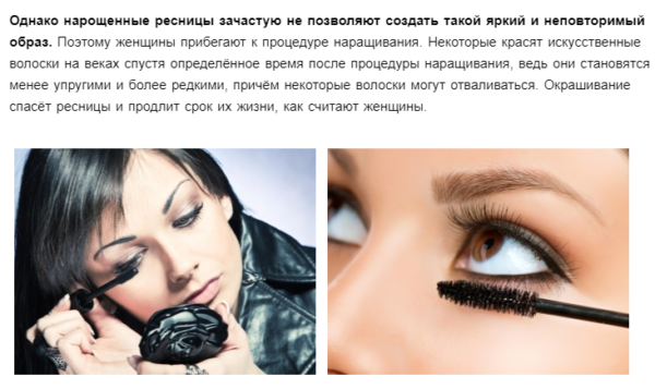 После наращивания густота и цвет искусственных ресничек являются оптимальными, применение туши ежедневно не требуется. На праздничное мероприятие можно их подкрасить, но нужно использовать средство на водной основе.