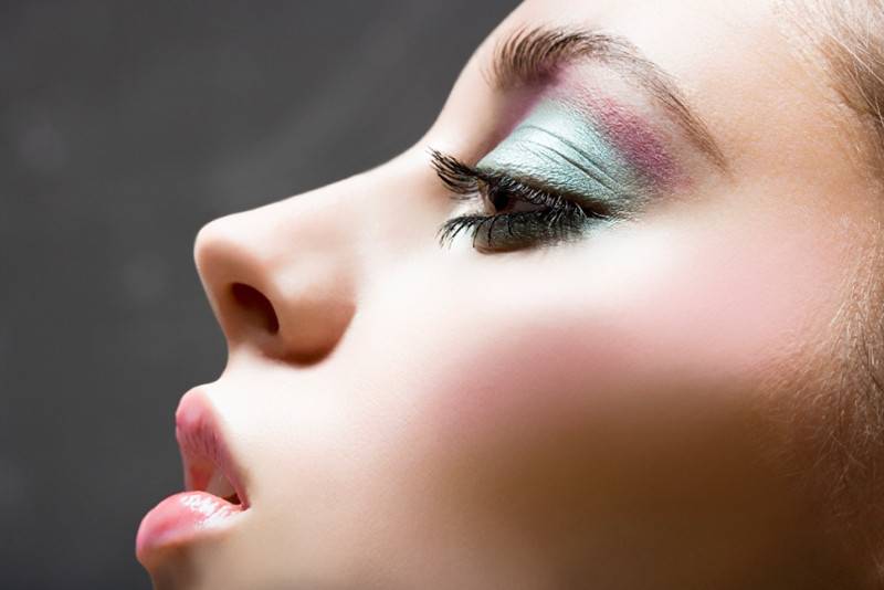 Оптически уменьшить ширину носа поможет такая неочевидная вещь, как акцент на внешний угол глаза. Визуально увеличивая расстояние между глазами, вы зрительно сузите нос. Подчеркните внешние углы глаз темными матовыми тенями и растушуйте их на верхних веках по направлению к вискам. Подвижные веки ближе к внутренним уголкам подчеркните светлыми сияющими тенями. Прокрасьте ресницы тушью.