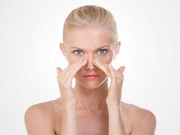 Хотите улучшить ситуацию с запавшей областью вокруг глаз и возле носа? Тогда поставьте два пальца — средний и безымянный — по обе стороны переносицы, наморщите нос и надавите подушечками на кожу. Зафиксируйтесь на 6–7 секунд. Проделывайте подобное упражнение каждый день по 3 раза за один подход.