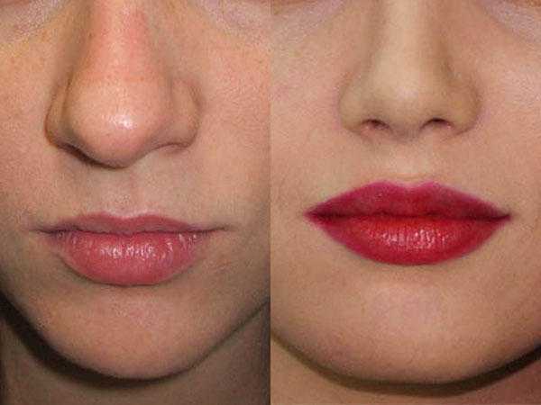 Если вы сделаете акцент макияжа на губы, это поможет отвлечь внимание от носа, и он станет менее заметным. Сочные румяна, нанесенные от ямочек на щеках и растянутые на висках, тоже отвлекут на себя внимание, но оттенок выбирайте в коричневато-бронзовых тонах