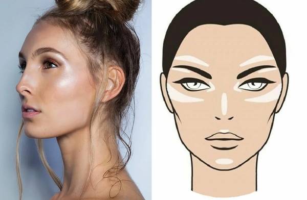 Крупный нос «картошкой» тоже можно уменьшить. Чтобы сделать его более изящным, на спинку носа наносят хайлайтер, а темный скульптор — не только на крылья носа, но и по краям самой спинки.