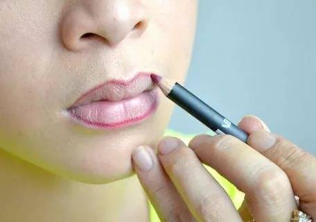 - Чтобы продлить стойкость помады, и сохранить яркость цвета необходимо заштриховать карандашом всю поверхность губ.