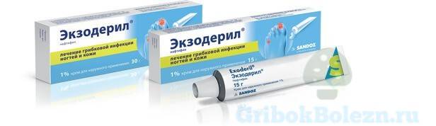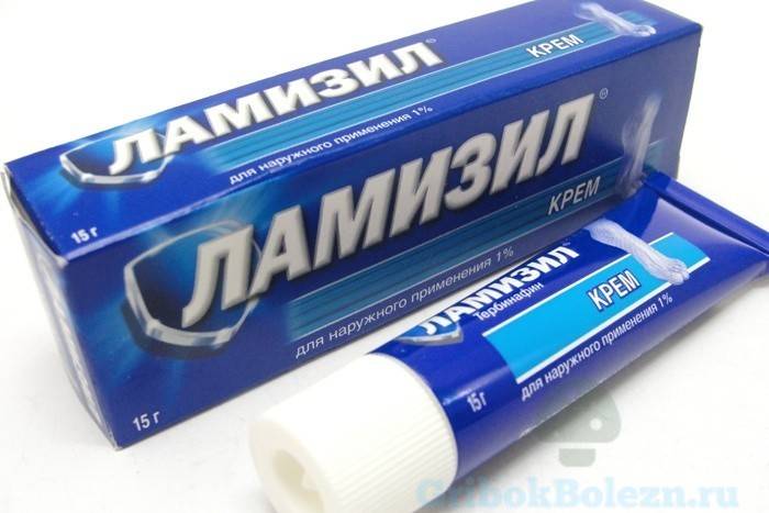 Это еще один хороший крем от грибка на основе гидрохлорида нафтафина, который активен по отношению к дерматофитам, плесневым и дрожжевым грибам. Также он содержит воду, спирт, цетилпальмитат, гидроксид натрия и т. д. Средством смазывают пораженный ноготь и окружающие ткани однократно за сутки. Средняя продолжительность терапии – месяц.