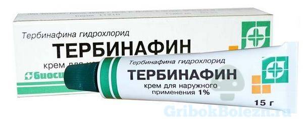 Тербинафин один из немногих препаратов, после применения которого отмечается положительный эффект очень быстро. Уже через несколько дней после регулярного использования грибковые проявления исчезают. Цена крема Тербинафин (15 г) варьируется в промежутке от 80 до 130 рублей