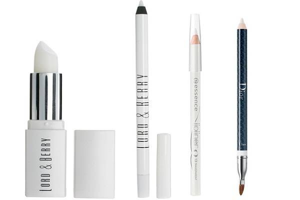 Белые. С их помощью можно зрительно сделать губы большими. В составе карандаша мерцающие частицы, которые придают объема. Так же эту косметику используют для создания бликов на губах.