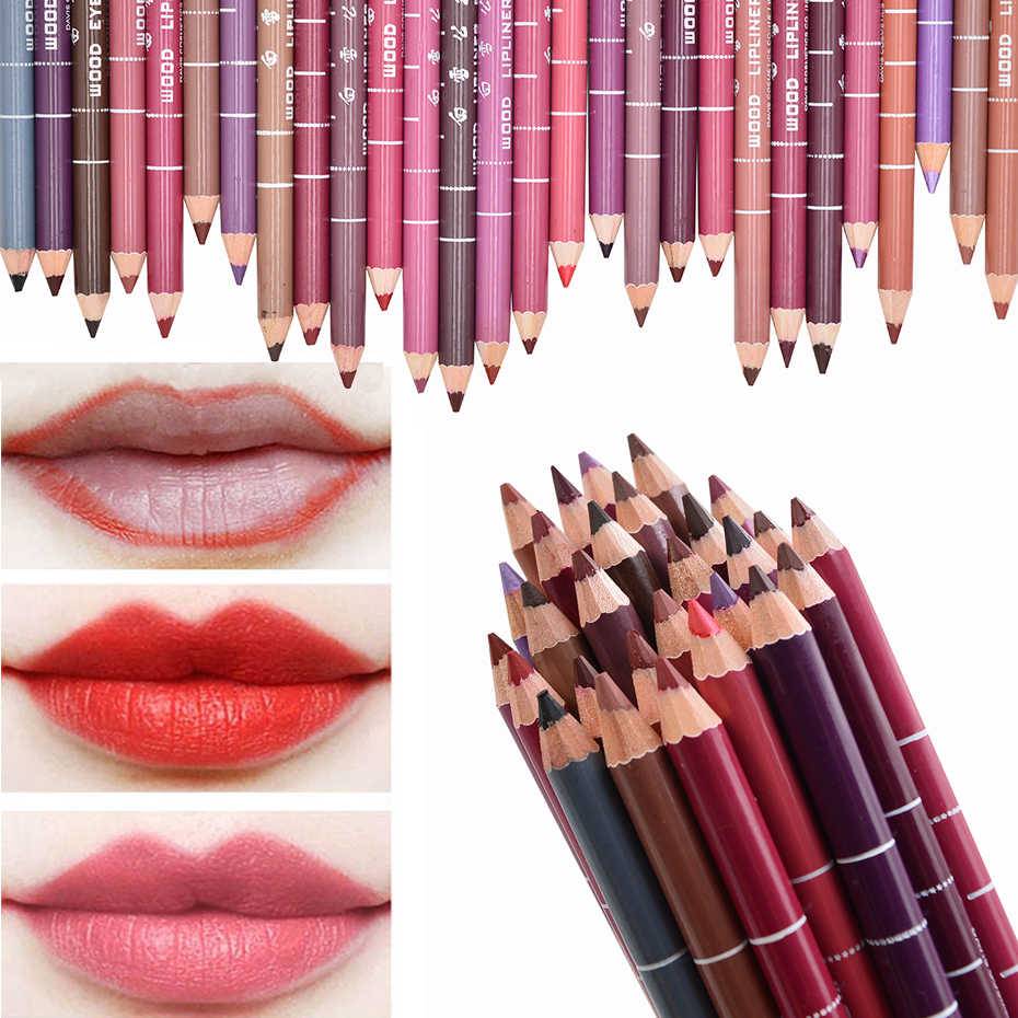 - Деревянный карандаш. Классический карандаш с грифелем, который производится с использованием смол и воска, благодаря чему мягко скользит по губам, не царапая их и равномерно отдавая цвет. Преимущество деревянного карандаша заключается в том, что он экономно расходуется и его можно затачивать по своему усмотрению. Такой тип карандаша самый твердый и способен рисовать тонкие и четкие линии. Легкость использования зависит от дерева, из которого изготовлен карандаш — чем мягче порода, тем более комфортным является нанесение краски на кожу. Главный недостаток деревянного карандаша в его хрупкости и необходимости постоянной заточки.