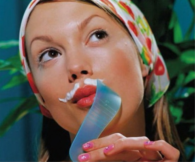 Теперь можно наносить препарат на те места, откуда нужно убрать волоски: переносица, кожа над верхней губой и т. п