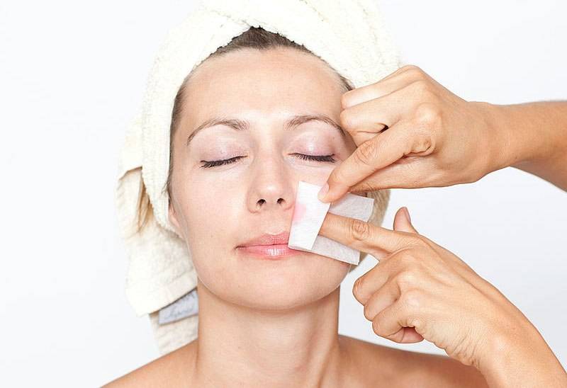 В конце процедуры нужно убрать специальной салфеткой или шпателем волосы с обработанного участка, после чего промыть лицо проточной водой без мыла.