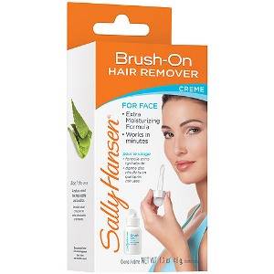 Есть такое специальное средство для устранения волос на лице как «Brush-on Hair Remover Crème for face» от фирмы Sally Hansen. Оно избавляет от неприглядных волосков очень быстро и безболезненно. Волоски во время депиляции как бы «выползают» на поверхность кожи или растворяются под воздействием сильных компонентов, входящих в крем.