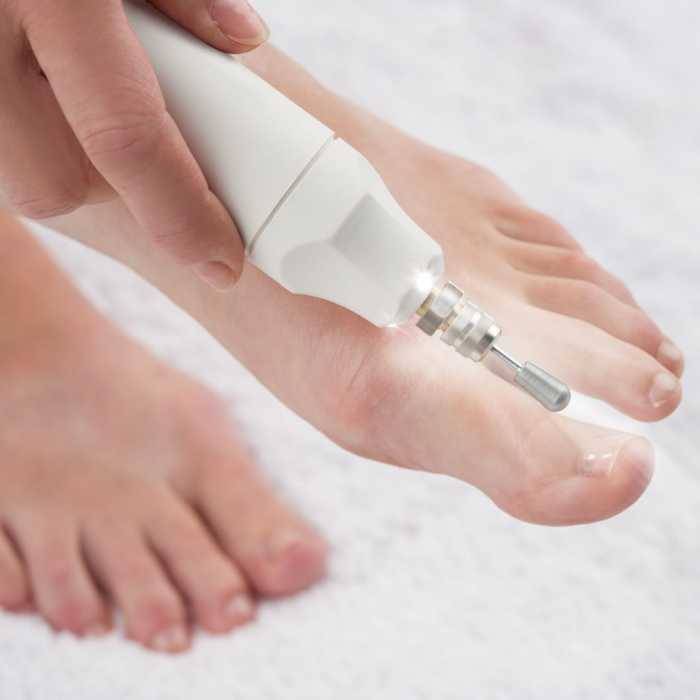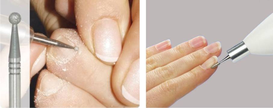 - Наденьте на аппарат насадку конус или цилиндр, обработайте загрубевшие места вокруг ногтей. Начинайте со самой слабой скорости и не переусердствуйте. Вам не должно быть больно или горячо.