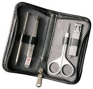 Маникюрный набор для мужчин минимален. Это ножницы, щипчики и пилочка. Мужские наборы, как правило, упакованы в чехлы с лаконичным дизайном без дополнительных элементов декора.