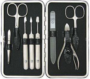 - Mertz. Этот немецкий бренд всегда занимает лидирующие позиции в любых рейтингах лучших качественных маникюрных наборов. Высокоугледородистая сталь, из которой производятся инструменты этой компании, делает продукцию долговечной. Главные отличительные особенности бренда — это высококачественные материалы, оптимальная стоимость и широкий выбор футляров.