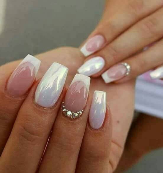 Уместной в дизайне свадебного маникюра в нынешнем сезоне станет жемчужная втирка. Благодаря неповторимому эффекту жемчужной втирки свадебный маникюр приобретает особенный утонченный и оригинальный блеск.