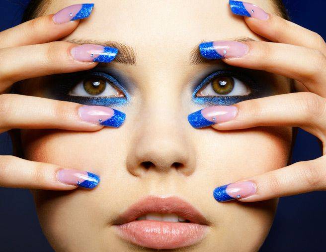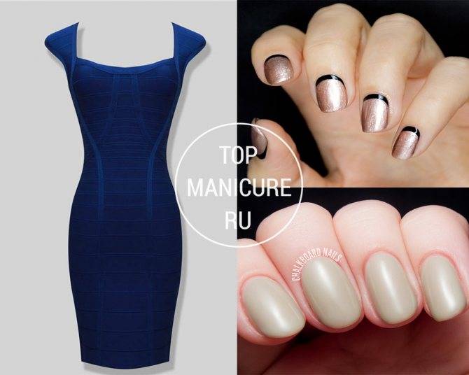 Какой маникюр подойдет к синему платью? Проще всего подобрать цвет маникюра под цвет наряда. Но когда оттенки ногтей и платью точно совпадают, это смотрится не гармонично. Идеальным вариантом может оказаться более темный тон маникюра. Для вечернего выхода отлично подойдет нейл-арт с использованием блесток и стразов. К дневному выходу или джинсовому наряду составят образ матовые оттенки синего и цветной френч.