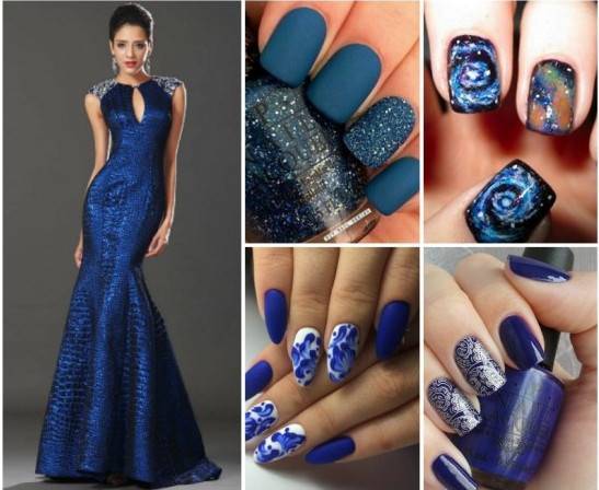 Пофантазируйте над цветом при подборе маникюра к синему платью