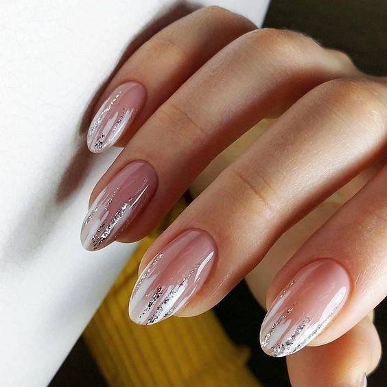 Не менее оригинально и обворожительно смотрится градиентный свадебный маникюр 2024-2025, представленный на фото примерах. Для создания подобного маникюра, совсем не обязательно использовать белый оттенок лака. Это могут быть и другие пастельные оттенки: бежевый, розовый, карамельный, сиреневый.