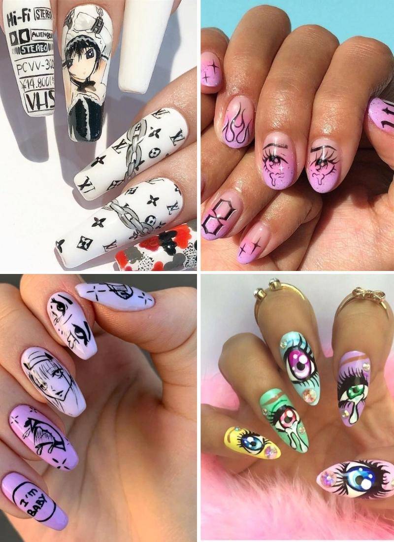 Не можете выбрать свадебный маникюр на короткие ногти? Всегда можно выбрать вариант со стемпингом в виде аниме. Такая идея точно понравится юной невесте. Причем маникюр такого вида необязательно использовать под яркое и смелое платье, он может сочетаться и с классикой, выделяться контрастом.