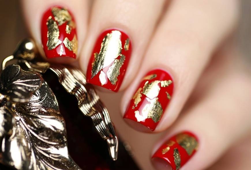 Добавьте немного золота в маникюр и украшения, подбирая их под красное платье