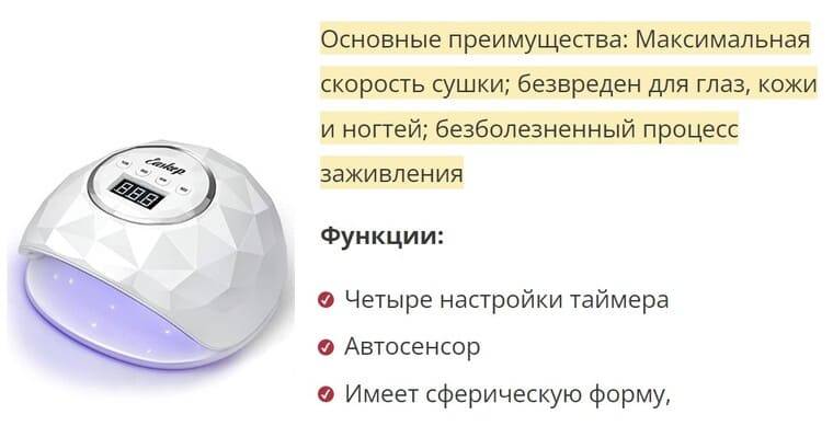 ЛЕД лампы для сушки ногтей имеют свои неоспоримые преимущества, которых немного больше, чем в предыдущем изделии: