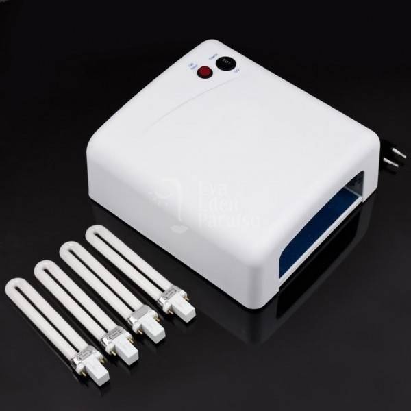 Наиболее распространённой считается маникюрная УФ-лампа для сушки покрытия. Её мощность – 36 Вт. Именно эти приборы считаются оптимальными в соотношении цены и качества. Они подходят как для домашнего использования, так и для профессионального ухода в салонах. В таких сушках обычно встроен таймер на 2 минуты. Именно за это время при ультрафиолете полимеризуется (застывает) покрытие.