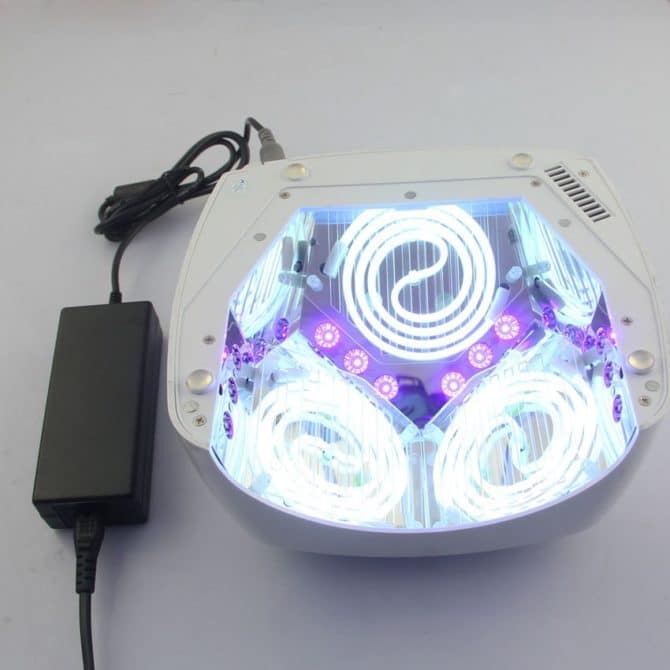 Некоторые профессиональные приборы для салонов красоты сконструированы с применением сразу двух различных видов излучателей. Такое конструктивное решение позволяет полимеризовать любые виды лаков и гелей для ногтей, но об этом чуть ниже.