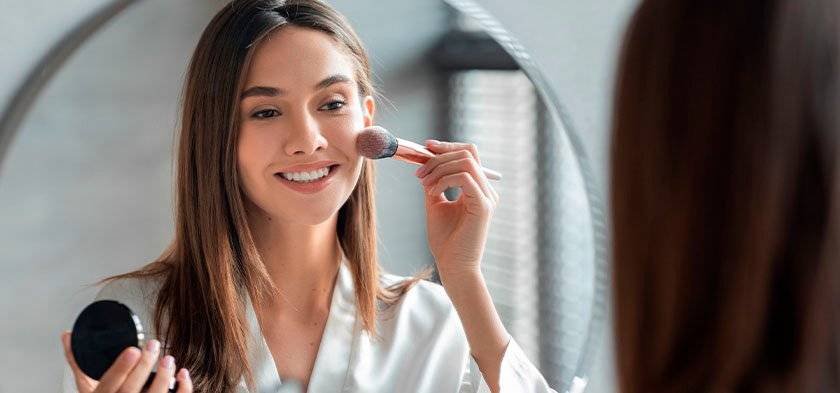 В финале можно добавить лицу свежести, создав эффект едва тронутых румянцем щек. Чтобы он выглядел натурально, выбирайте нежные розовые оттенки и тщательно растушевывайте текстуру.