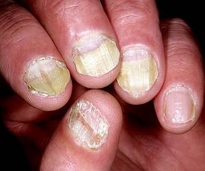 При грибковом происхождении заболевания верхние слои пластины гораздо легче отделяются, нежели при ногтевом псориазе. Кроме того, при изучаемом нами недуге не изменяется форма пластины и заболевший человек не испытывает болезненных ощущений. Еще один не маловажный симптом, который поможет распознать незаразную патологию – нет резкого запаха, какой присутствует при кандидозах.