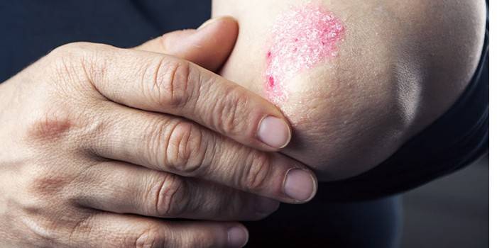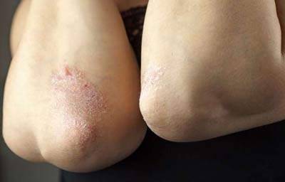 Псориаз на локтях обычно протекает волнообразно, с рецидивами и ремиссиями. Обострения развиваются стандартно.