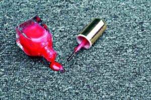 Также это средство подойдет для того, чтобы вывести пятно от лака для ногтей с ковра. Правда, не для всех. К примеру, шерстяные ковры мочить не рекомендуют.