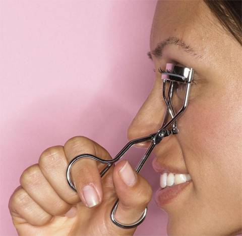 - Если женщина хочет сделать взгляд более выразительным, акцентировать область глаз, но не использовать при этом косметику или свети ее применение к минимуму. Щипцы сделают ресницы объемными и привлекательно изогнутыми даже без использования туши. Поэтому таким инструментом часто пользуются девушки, являющиеся сторонницами макияжа в стиле нюд.