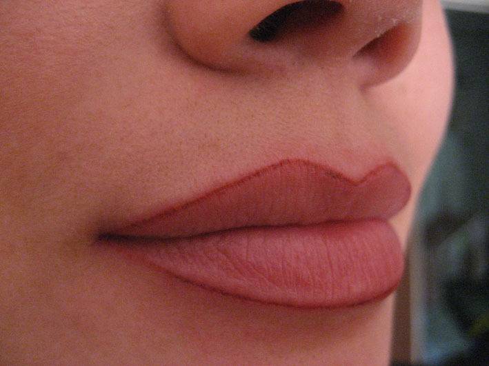 - Перманентная помада — губы полностью заполняются светлым пигментом.