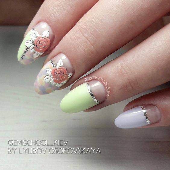 На ногтях миндальной формы красиво смотрятся практически все предложенные мастерами нейл-арта варианты оформления маникюра. Однако, среди них мы выбрали самые модные и носибельные дизайны, которые привели ниже.