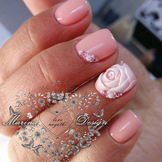 - круглые короткие ногти, окрашенный в нюдовый цвет, чтобы ноготки были продолжением пальцев;