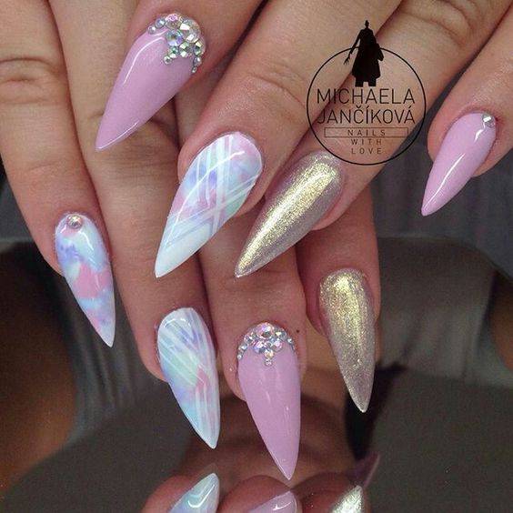 Форма ноготков «пуанты» вошла в моду еще в прошлом году, но не перестает набирать популярность и на сегодняшний день. Выбрав такую форму, вы без сомнений станете одной из самых стильных девушек вашего города. Вариантов нейл-дизайна для таких ноготков огромное множество, что позволит экспериментировать различными техниками.