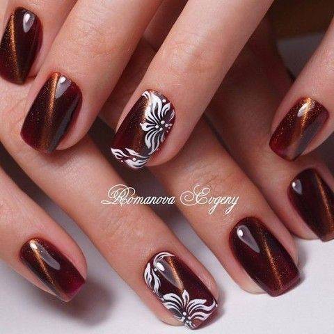 Используем темные цвета лаков, особенно хорошо будут смотреться черный, темно-коричневый, темно-синий, бордовые, сливовые цвета.