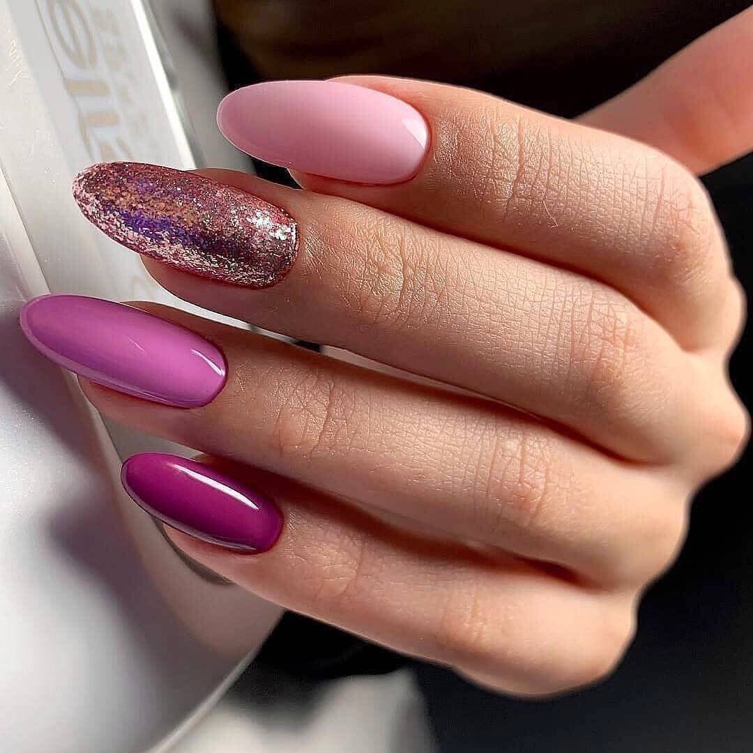 Лаки с глиттером — это лаки с крупными или мелкими блестками, которые придают ногтям эффект яркости и блеска. Они могут быть как прозрачными, так и содержать цветной базовый оттенок.