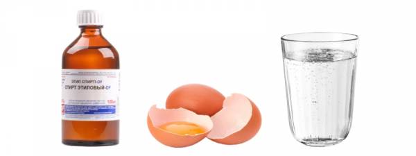 Желтки взбиваются венчиком до получения белой пены, добавляется вода и спирт, все перемешивается. Смесь сразу наносится на чисто вымытые волосы, втирается в корни, растягивается гребнем по всей длине локонов, держится 30 минут и смывается.
