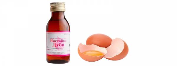 Спиртовую настойку коры дуба соединяют с сырым яйцом и тщательно перемешивают. Массу наносят на чисто вымытые мокрые волосы на 15 минут, смывают. Через 2-3 процедуры уже виден эффект.