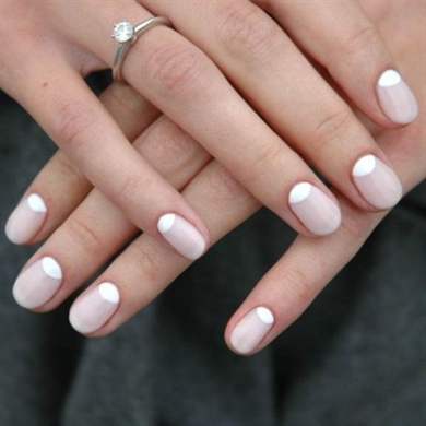 Нарощенные ногти в технике френч – хит этого сезона. Классика стиля – нейтральный окрас ногтевого ложа и белые «улыбки». Однако сейчас от этой основы расходится множество неожиданных идей: френч наоборот, лунный френч, «улыбки» всевозможных оттенков от зелёного до чёрного.