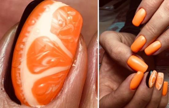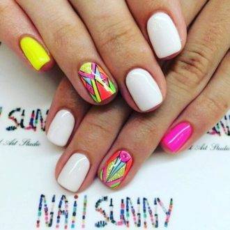 Для самого яркого маникюра, нельзя забывать о витаминных оттенках, таких как мандариновый, лимонно-желтый, кораллово-красный и салатовый.