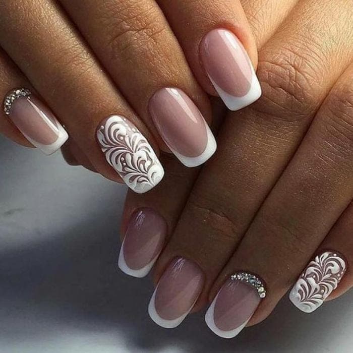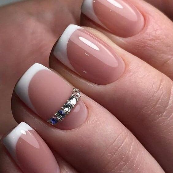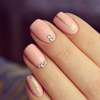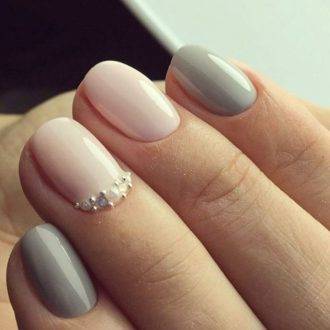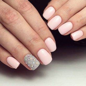 Для коротких ногтей такой маникюр требует особого подхода: здесь главное не перестараться. Делайте из камушков лишь небольшой акцент для особых случаев.