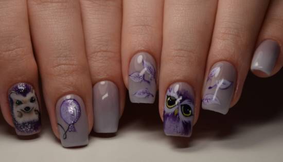 Весенний модный маникюр – первоцветы, веточки зелени. Летний тренд – сочные фрукты, ягоды, морские ракушки. Осень позволит разместить на пальцах желтые листья, грибы, дождевые капли, любую картинку, которая поможет скрасить осеннюю хандру. Способна воплотить даже самую сложную задумку новинка в области нейл-арта – водные наклейки специально для гель лакового покрытия. Картинки разнообразны: сложные изображения, цветы, узоры, мультяшные персонажи