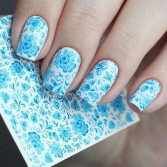 Зимой – снежинки, снеговики, деды морозы, сосульки. Весенний модный маникюр – первоцветы, веточки зелени. Летний тренд – сочные фрукты, ягоды, морские ракушки. Осень позволит разместить на пальцах желтые листья, грибы, дождевые капли, любую картинку, которая поможет скрасить осеннюю хандру. Способна воплотить даже самую сложную задумку новинка в области нейл-арта – водные наклейки специально для гель лакового покрытия. Картинки разнообразны: сложные изображения, цветы, узоры, мультяшные персонажи.