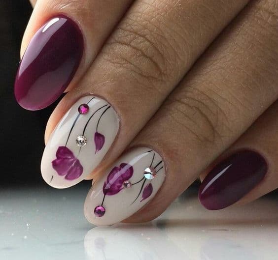 Овальная форма ногтей практична, их нелегко сломать. Овал идеально подходит для женщин, которые предпочитают низкие затраты на обслуживание. Если у вас слабые ногти, вы можете сохранить их красивыми с помощью овальной формы. С цветами и блестками они действительно могут выглядеть великолепно!