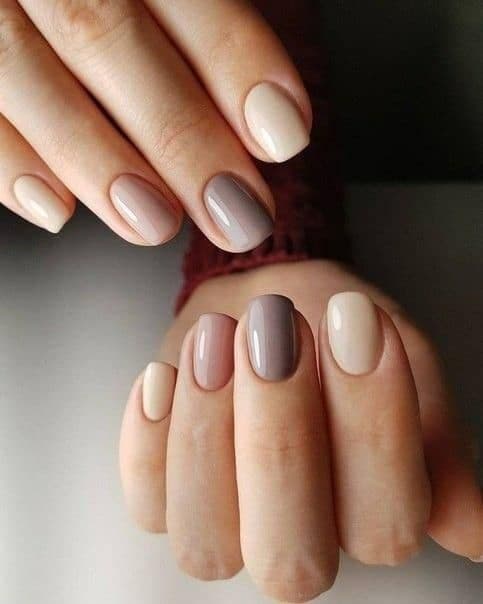 Маникюр в стиле nude поможет сделать ваш образ в следующем году элегантным и стильным. В холодную пору года хорошо смотрится округлый нейл-арт и покрытия лиловых, серых, коричневых и розово-серых тонов в композиции с молочно-белым кончиком ноготка. В весенне-летнюю пору нейтральные оттенки можно поменять более яркими – персиковым, светло-жёлтым, нежно-зелёным, светло-красным, предпочитая не насыщенные «разбавленные» оттенки.