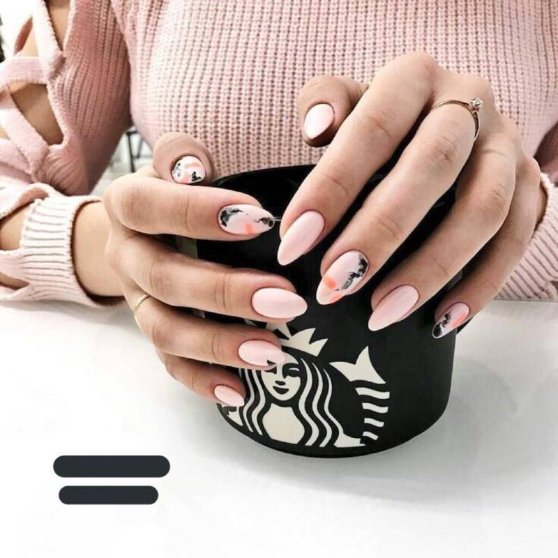 Первый в хит-параде самых элегантных маникюров, конечно, нюд. Под этой фразой обычно подразумевается однотонное покрытие оттенками розово-бежево-коричневой гаммы. Главное условие — цвета должны быть максимально нежными и пастельными, а может и полупрозрачными. Поэтому в рамках нюдового маникюра все ногти иногда покрывают обычной базой для французского маникюра, чтобы просматривалась естественная ногтевая пластина, но при этом она была “украшена” вуалью из цвета. А если хочется оригинальности, можно попробовать трендовый прием с отдельным оттенком для каждого ногтя (в рамках одной цветовой гаммы). Ниже подобрали несколько вариантов с учетом классического и более оригинального нюда на ногтях.
