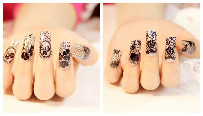 Производители позаботились об этом и разработали специальное кружево для мастеров ногтевого сервиса. Кружево накладывают на ноготь, и наносят топовое покрытие, для того чтобы убрать неровности.