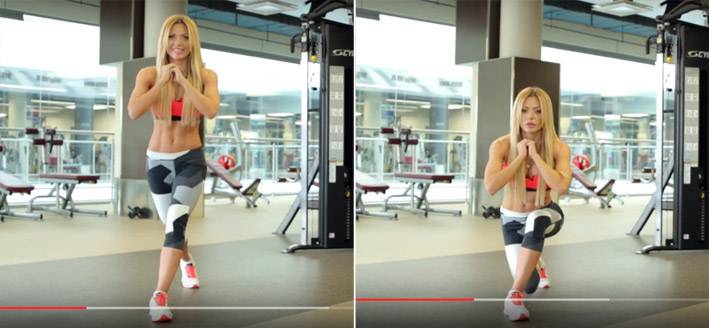 Выполняя косые или диагональные выпады в динамичной манере (после каждого приседания возвращая опорную ногу в исходное положение), попробуйте делать этой ногой дополнительный мах в сторону. Таким образом, вы дадите дополнительную нагрузку на среднюю ягодичную мышцу. Это сделает тренировку ягодиц более комплексной.