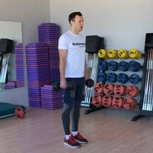 Рабочий вес. В этом упражнении максимальные веса применять чрезвычайно опасно – потерять равновесие, даже с гантелями (не говоря уже про штангу) очень легко. Поэтому применяется средний или минимальный рабочий вес. Количество повторений. Оптимально – от 8 до 15. Скорость выполнения